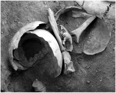 Junto a estas marcas se han constatado también evidencias de cocción, y algunas alteraciones térmicas vinculadas al desecho posterior al consumo, habiéndose quemado algunos huesos. Esto, ligado al hallazgo de los restos en un contexto de basurero, sin orden y mezclados entre sí (Solari Giachino, 2010: 224), supone para los investigadores el descarte del ritual, volviendo a encontrarnos ante un caso de canibalismo gastronómico.