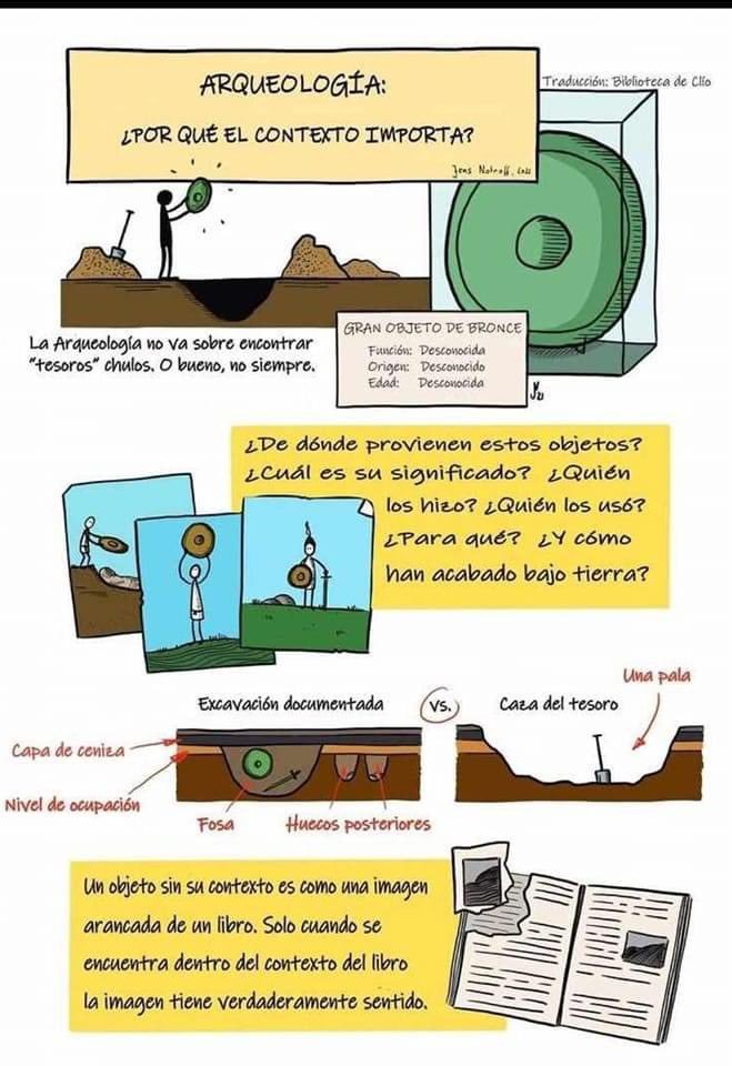 Y, ¿qué tiene que ver esto con la arqueología? Sabemos que la arqueología es la disciplina que estudia las sociedades pasadas a través de los restos materiales que se conservan. Si, por desgracia, estos restos materiales no son manipulados por profesionales, se destruye la historia. Es decir, la metodología de trabajo que usan los arqueólogos está diseñada para obtener la mayor información posible, teniendo en cuenta el contexto de todos los bienes arqueológicos.