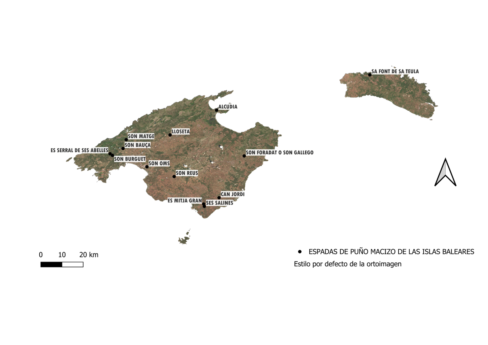 Se conocen 19 espadas de la Prehistoria balear, aunque pueden existir más, o incluso menos, debido a la falta de datos sobre estos objetos. Existen grandes lagunas en la información disponible sobre las espadas de puño macizo. Algunas solo se conocen por dibujos, otras, poseen extrañas condiciones actuales y, tan solo una de estas espadas se ha podido estudiar desde su lugar de origen hasta el traslado al museo con una metodología arqueológica actual, la espada de Serral de Ses Abelles (Sureda et al, 2021).
