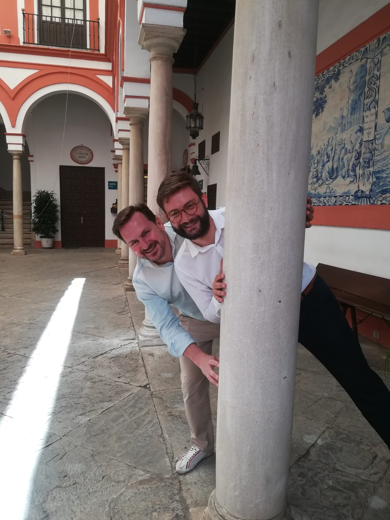 Sergio Raya: El interés surgió de una necesidad compartida de conectar el mundo académico con la sociedad. Yo venía de un entorno académico, el doctorado y un departamento muy tradicional de Historia del Arte, mientras que Óscar traía una visión más aperturista y enfocada en sus estudios lingüísticos y teatrales. Nos conocimos cursando el Máster en Gestión Cultural en la Universidad de Sevilla y allí vimos que había un vacío: el patrimonio se explicaba, pero no se «vivía».