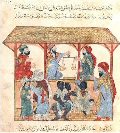 En cuanto a la red y venta de esclavos (Fig. 1), debemos tener en cuenta que van conquistando territorios donde ya se practicaba la esclavitud con anterioridad (reinos cristianos o sociedades preislámicas, por ejemplo). Dentro de la red europea iniciada en el siglo X se movían esclavos judíos, paganos, cristianos… pero sin lugar a duda la gran mayoría fueron eslavos; de aquí viene la palabra que usamos hoy en día, «Slave» en ingles traducida al árabe como ṣaqāliba (Phillips, 2013: 25-26). Saliendo del espacio europeo, la otra gran red fue la africana. Esta red cogió fuerza a partir del siglo XII donde se movían principalmente esclavos etíopes, egipcios y sobre todo nubios (Phillips, 2010: 154-155; 2013: 69; Goitein, 2000: 134, 137).