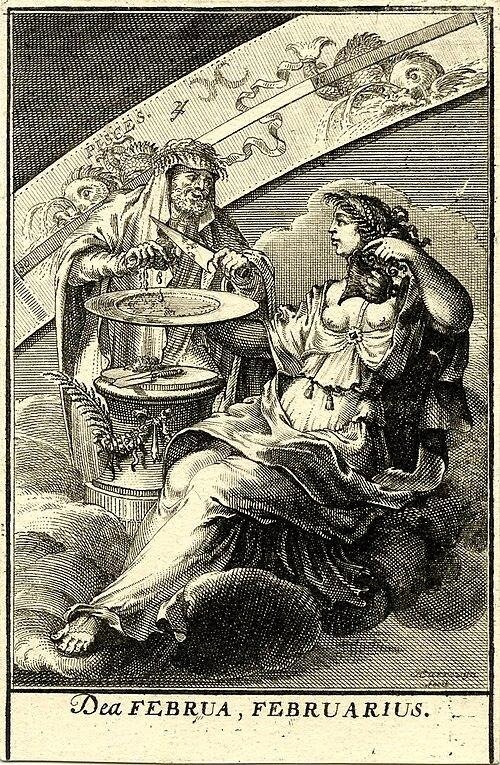 En la mitología romana y etrusca, Februus era el dios de los muertos, de la purificación y las lustraciones, por lo cual guarda vínculo con el mes elegido para su patronazgo y veneración. Según Smith (1880, p. 142), dicha purificación también era necesaria para producir fertilidad tanto en los hombres como en las bestias y, también, señala que febrero estaba dedicado a la diosa Juno, que era conocida como Februata o Februtis.