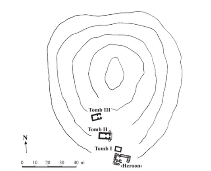 - Tumba II: Una tumba monumental, acompañada por un heroon y a la que se accedió el 8 de noviembre de 1977