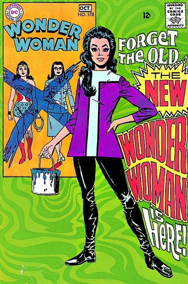 ¿Qué pasó entonces con Wonder Woman, nacida precisamente en el escenario anterior como «nuevo modelo de feminidad»? A la muerte de Marston en 1947, tan sólo dos años después de la guerra, el personaje quedó descontextualizado y su mensaje, borrado a la fuerza por sus sucesores. El editor Robert Kanigher –más tarde sustituido por Mike Sekowsky– tomó las riendas de la historia de Diana Prince y, consciente de su influencia como «ejemplo de feminidad», la transformó. Wonder Woman perdió sus poderes, colgó su traje, trabajó regentando una tienda de ropa y se dedicó a la conquista del corazón del Capitán Trevor.