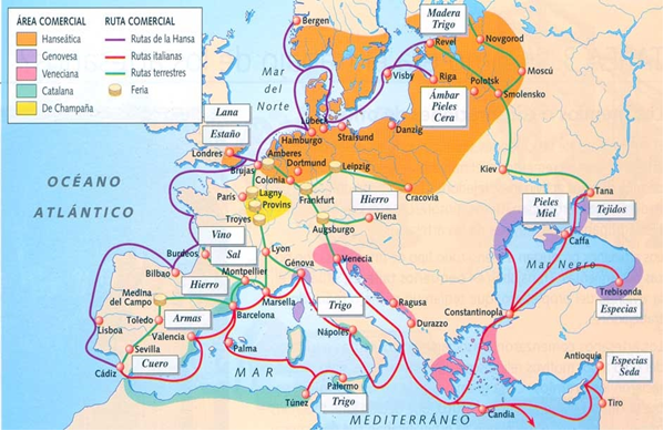 Deduzcamos que la mayoría de las rutas de comercio llegaban a puertos y solo una parte menor de ellas fue desarrollada en las vías terrestres. La Liga Hanséatica aprovechaba obviamente sus monopolios marítimos cuanto podía y solo por la mejor accesibilidad de unos sitios terrestres, amplificó su actividad comercial hacia el interior de Europa (Hammel-Kiesow, 2008).