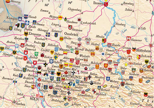 La Hansa fue, en primer lugar, una organización dedicada al comercio marítimo, así que las ciudades que quedaban en el interior del país solo parcialmente participaban en este tipo de comercio. Sobre todo, el gran número de ciudades hanseáticas en Westfalia extraña entonces, pero se explica por un lado con la buena ubicación, ya que las vías terrestres desde el norte de Europa hasta Flandes y Francia necesariamente atravesaban las tierras westfálicas, y emplazamientos como Dortmund y Colonia marcaban puntos de interés económico internacional. Además, las ciudades en las orillas del río Rin tenían una rápida conexión tanto con la selva negra en el sur, cuya madera fue vendida a los países bajos, como con las ciudades comerciantes holandesas. El impuesto para el pasaje del Rin benefició durante mucho tiempo, especialmente a la sede episcopal de Colonia. De toda forma, vemos que en Westfalia también ciudades sin comercio fluvial estuvieron incorporadas en la Hansa, y eso sólo se explica con las ventajas de la unión políticas y con la participación en el poder del imperio que significaban la pertenencia a la liga hanseática: