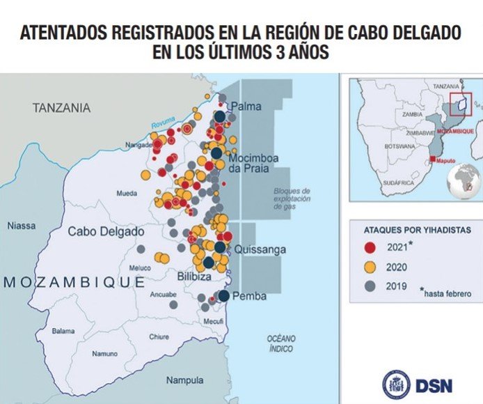 Díez Alcalde, J. (2021, septiembre). MOZAMBIQUE: la expansión del yihadismo en el sur de África. Revista Española de Defensa. Recuperado 15 de noviembre de 2022, de https://www.dsn.gob.es/es/documento/mozambique-expansi%C3%B3n-del-yihadismo-sur-%C3%A1frica
